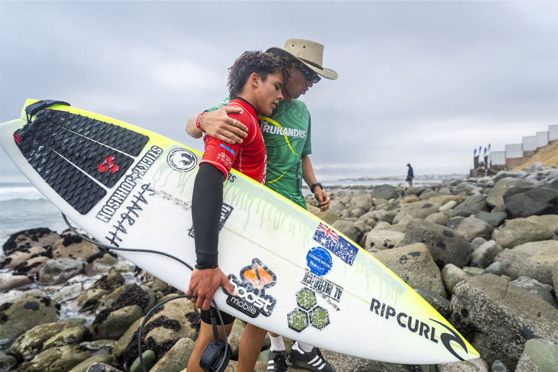 En un día lleno de buzzer-beaters, ninguno fue tan intenso como el Heat 20 de U/16 varones, que terminó con un cambio casi total en las posiciones. Tras pasar más de la mitad del heat sin tomar una sola ola, Ocean Lancaster (AUS) ejecutó una derecha larga de Punta Rocas con precisión para lograr un 8.50. Cayéndose en su segunda ola con apenas 30 segundos restantes, Lancaster remó desesperado a la única ola disponible. Antes necesitaba solo 0.37 para avanzar, pero sabía que debía hacer más.