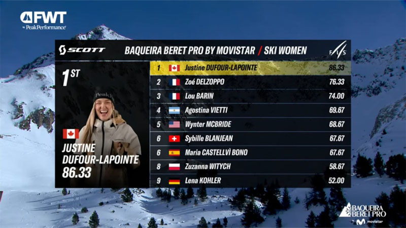 La argentina Agostina Vietti obtuvo un histórico 4to puesta en la primera fecha del Freeride World Tour realizada en Baqueira Beret, España.