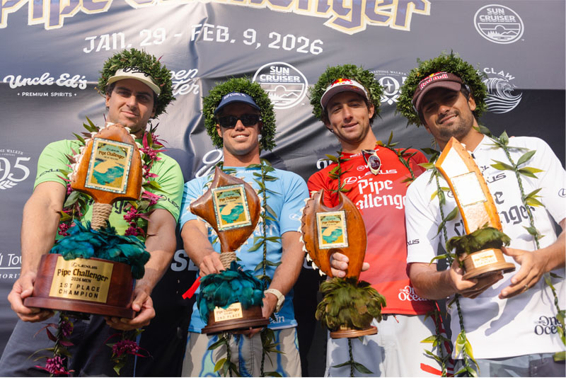 Griffin Colapinto (USA) llegó a este evento buscando sumar tiempo en el agua en Pipeline y lo logró con una gran actuación hasta la Final. Exigió al máximo a la elite del Challenger Series, mostrando lo que les espera en el CT 2026, con múltiples puntajes excelentes. El evento tuvo además un momento muy especial para Colapinto, dedicado a su abuela fallecida recientemente.