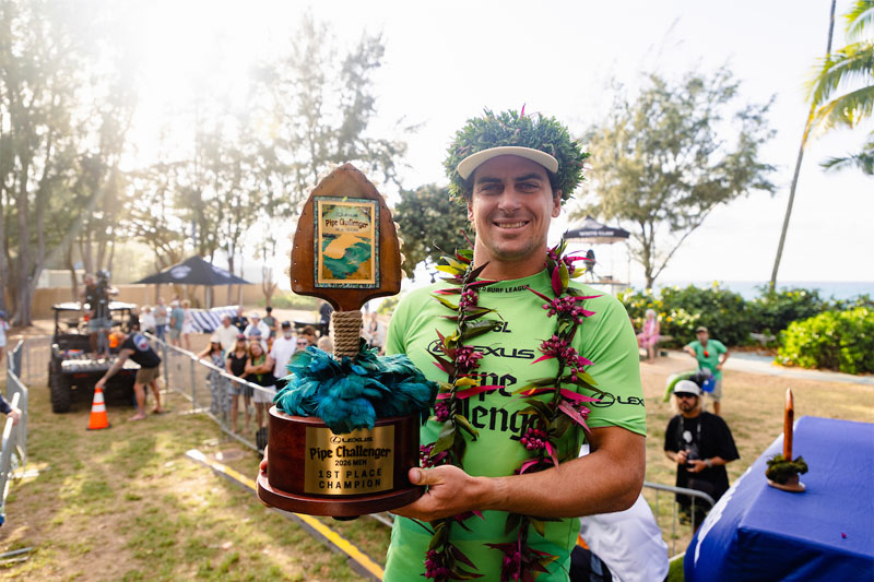 Callum Robson (AUS) se consagró campeón del Lexus Pipe Challenger Presented by Billabong 2026, sexta parada del Challenger Series 2025/2026 (CS). Una mañana increíble, con olas sólidas de entre diez y quince pies, ofreció un verdadero espectáculo durante la Ronda de 32 masculina, los Cuartos de Final y el inicio de las Semifinales, con Robson demostrando que estaba listo para el desafío rumbo a la Final.