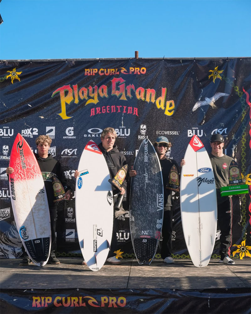 Maya Larripa y Franco Radziunas se consagraron ganadores de esta edición del Rip Curl Pro, dejando todo en el agua para quedarse con el primer puesto. En la categoría masculina, el podio lo completaron Thiago Passeri (2°) y el tercer lugar fue compartido por Ignacio Gundesen y Joaquin Muñoz Larreta. Por el lado de las chicas, Victoria Muñoz Larreta se quedó con el segundo puesto, mientras que Lucia Cosoleto y Maia Radziunas compartieron el tercer escalón del podio.