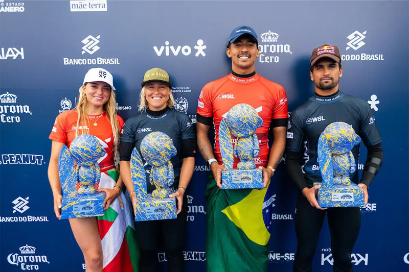 Samuel Pupo (BRA) y Yolanda Hopkins (POR) se coronaron campeones del Banco do Brasil Saquarema Pro presentado por Corona Cero, la quinta parada del Challenger Series 2025 de la World Surf League (WSL), disputada en olas complicadas de 60 a 90 cm y con viento cruzado.