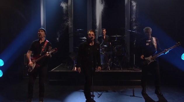 La formación irlandesa liderada por Bono se encuentra promocionando su nuevo disco de estudio “Songs Of Experience”, disponible desde el pasado 1 de diciembre, y ofreció un show en vivo en el programa de la cadena NBC, donde interpretó “American Soul” y “Get Out Of Your Own Way”.